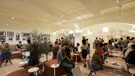 建物の中心に位置する、パティシエやバリスタの実演が見られるキッチンは迫力満点!