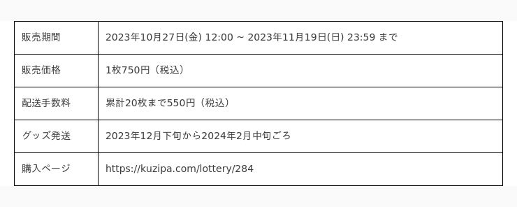 ※当選された商品は、通常のくじの当選商品と同梱し、お届けいたします。