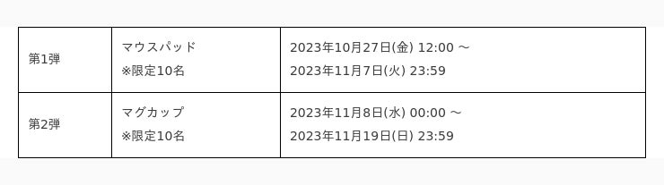※規定数は最大数であり、当選者数が規定数に達しない場合でも、抽選期間が終了した場合そのまま終了いたします。