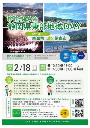 東京・有楽町の東京交通会館内にある「静岡県移住相談センター」で、移住相談会 静岡県東部地域DAY(熱海・伊東)を2月18日(日)に開催します。