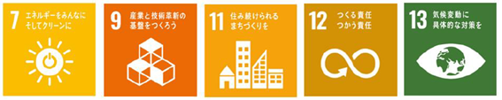 SDGsゴール ”7. 9. 11. 12. 13.”に対応