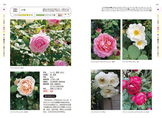 品種ごとに、別名、学名、原産地、園芸分類~花言葉を紹介しています。花の背景を知ることで、さらにその花に対しての愛着がわいてきます。また、実際に育てたいと思ったときは難易度や育て方ポイントが参考になります。