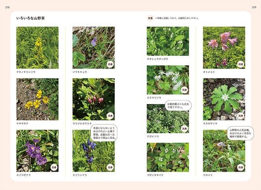 近年は、園芸種のある山野草や、一般に流通している山野草も増えています。庭には植えられないけれども、山野や高原で出会える愛らしい姿を誌面で楽しめます。