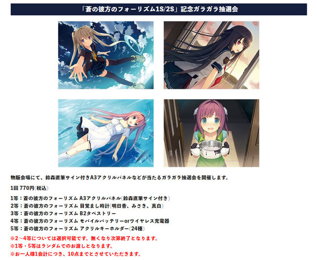『蒼の彼方のフォーリズム1S/2S』記念ガラガラ抽選会