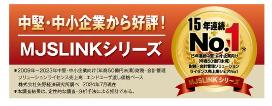 財務・会計システムおよび経営情報サービスを開発・販売する株式会社ミロク情報サービス(本社:東京都新宿区、代表取締役社長:是枝 周樹、以下「MJS」)は、市場マーケティング調査会社の株式会社矢野経済研究所が発行する「2024 ERP市場の実態と展望」(※1)における、年商50億円未満の企業向け財務・会計管理ソリューションのライセンス売上高シェア調査において、『MJSLINKシリーズ』が売上高シェアNo.1を獲得しました。同調査結果において、MJSは今回で2009年から15年連続のNo.1獲得となります。