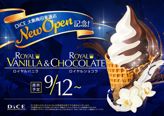 無料提供するソフトクリームは『ロイヤルバニラ』×『ロイヤルショコラ』の特別仕様となります。