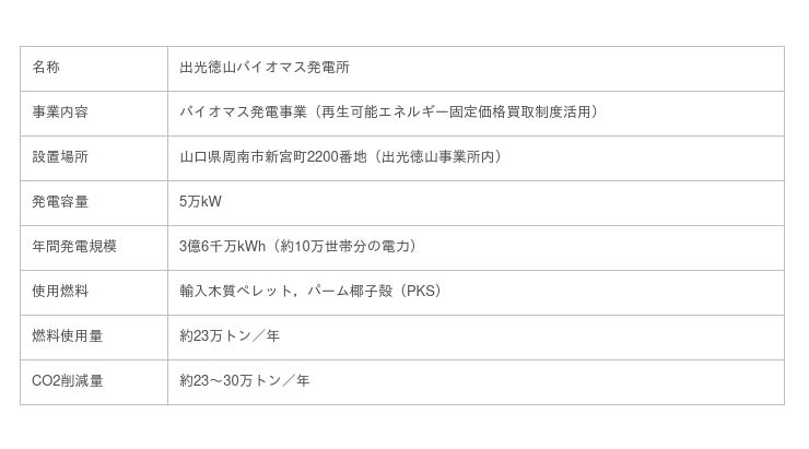 徳山事業所におけるバイオマス発電の事業化を決定 発電出力5万kWの大型発電所