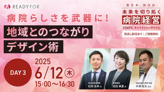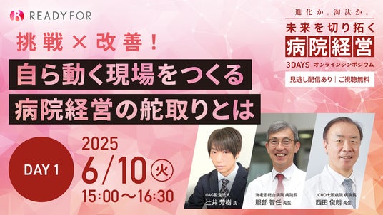 日本初・国内最大級のクラウドファンディングサービス「READYFOR」を運営するREADYFOR株式会社は、2025年6月10日(火)~6/12(木)にみらい病院シンポジウムvol.3「ー進化か淘汰かー 未来を切り拓く病院経営」を開催いたします。