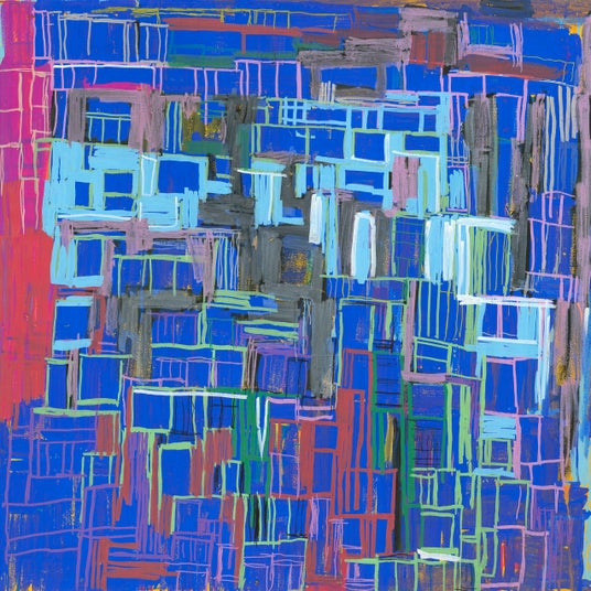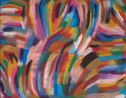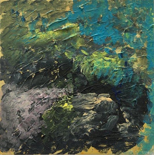 そんな彼女にとって、アクリル絵の具との出会いは幸せの始まりであった。絵を描くことが日課となり、そのカラフルで心踊る表現は、実際彼女に見えている風景であり、ほとんど言葉を発しない彼女の言葉なのである。