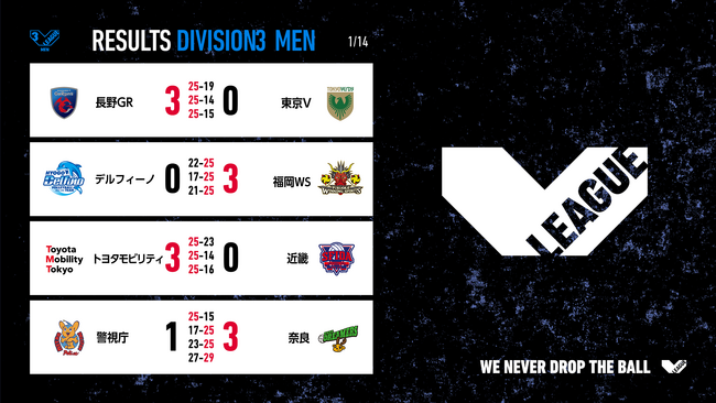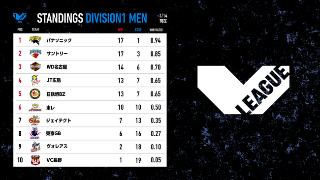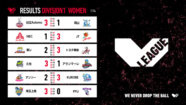 バレーボール国内最高峰リーグ V.LEAGUE【1月14日の試合結果】