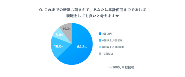 6割以上が転職は3回以内までと考えており、5回以内までを含むと8割に上る結果に