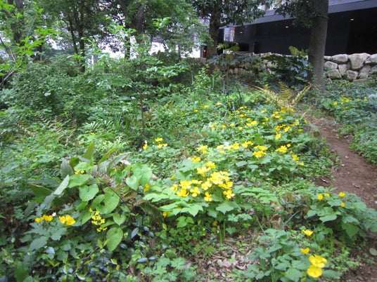 2013年に107種であった植物類は、その後、日照を好む種が減少し、日陰を好む種が増加する等、環境に合わせた適者生存・競争の結果、2021年には208種となりました。この中には、シロヤマブキ、ヤマブキソウ、アスカイノデ、イカリソウなど、国や東京都のレッドリストに掲載される希少種も含まれます。また、昆虫類では同様にウラナミアカシジミ、セスジイトトンボなど計129種、鳥類はタカやハヤブサなど計13種が確認されています。