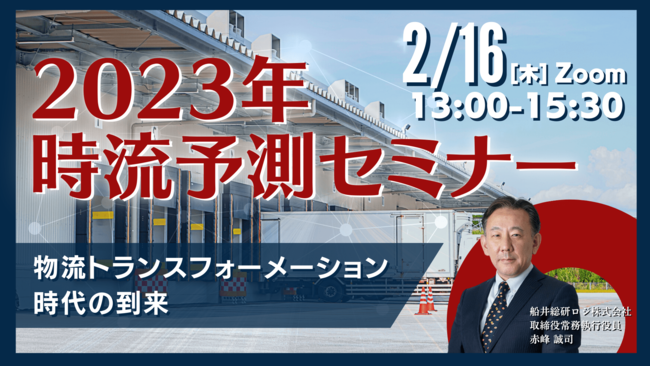 ロジスティクス・物流コンサルティングサービスを提供する船井総研ロジ株式会社(東京本社:東京都千代田区、代表:菅重宏、以下「船井総研ロジ」)は、2023年2月16日(木)13:00~15:30に「2023年時流予測セミナー”物流トランスフォーメーション”時代の到来」をオンラインで開催いたします。