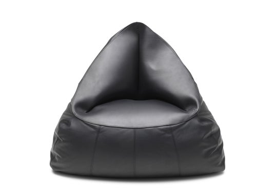 上質で柔らかなセミアニリン染めのレザーに、堅牢なサドルレザーを組み合わせたピラミッド型のビーンバッグ。リラックススペースのアイキャッチとして目を惹くアイテムです。