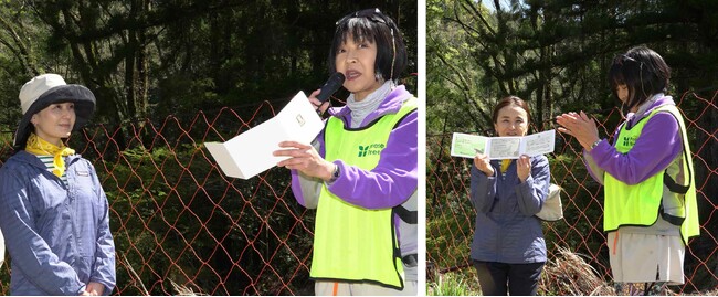 また「Present tree inくまもと山都」を運営する認定NPO法人環境リレーションズ研究所の鈴木代表からこのプロジェクトにロクシタンが最初に手を上げた感謝として、植樹証明書の贈呈式も行われました。「今回植樹地に選ばれた山都町荒谷地区は50年生のスギを伐りだした跡地。地権者、山都町、森林組合、NPOの4者0年間の森林整備協定を結んでいる。期限後に地域の森として返還する際に地元がしっかり管理できる素地を作りたい。また、山都町のプレゼントツリーの森が、生物多様性条約における「OECM*」として国際データベースに登録されるよう、関係者と協力しつつ活動を継続していきたい」と語りました。