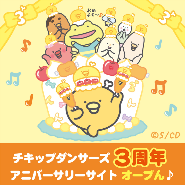 サンエックス株式会社(本社:東京都千代田区)は、「チキップダンサーズおどるん会(※)」製作アニメ「チキップダンサーズ」の3周年を記念したアニバーサリーサイトが本日3月1日にオープンしたことをお知らせします。