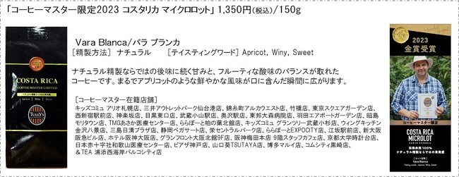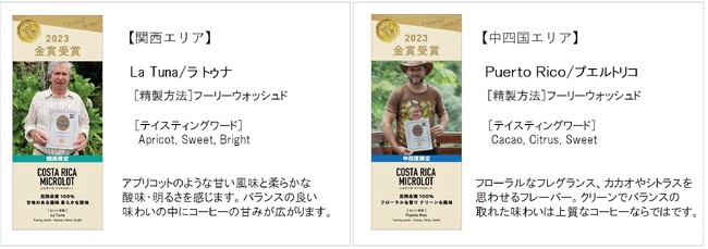 今回販売する「2023 コスタリカ マイクロロット」は、金賞を受賞したコーヒーを全国7エリアに分け、エリア限定商品としてお届けします。コーヒーマスター※2在籍店舗限定を含む、全8ロットの厳選された味わいをご堪能ください。