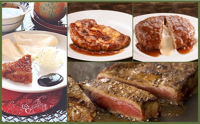 更に『プレミアムコース』では、肉厚でジューシーな『北京ダック』に加え、『ビーフ』と『ポーク』のステーキ、そして、お子さまも大好き!ふっくら焼き上げたハンバーグから、肉汁と10種類のブレンドした濃厚なチーズが溢れ出す『チーズインハンバーグ』が全て食べ放題!