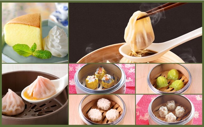 スペシャルコースでは、肉小籠包の他に、蟹の旨みたっぷりの『蟹小籠包』を食べ比べでご堪能いただけます。また小籠包2種に加え、しっとり柔らか『特製肉焼売』や、プリップリの海老がゴロっと入った『翡翠海老蒸し餃子』、彩り鮮やかな『海鮮焼売』、にらの風味がアクセントの『にら饅頭』。食後のデザートに嬉しい!ふわふわ食感の台湾スイーツ『台湾カステラ』など、定番人気の7種類の飲茶を食べ放題でお楽しみいただけます。