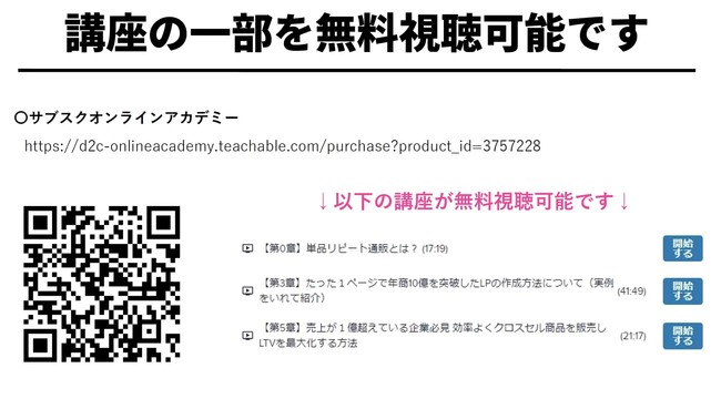 オンラインアカデミーの申し込みページURL:https://lp-subsc-d2c.com/sales-page1642755485276