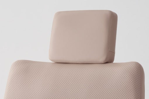 背もたれに差し込むだけで手早くセット可能。お客さまを自然に寝姿勢へと誘導できます。使用しないときはチェア側面にすっきり収まり、空間を