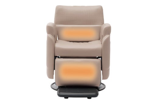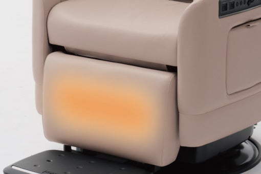 レッグレスト部にヒーターを内蔵。ヘッドスパやフェイシャルケアなどを行う寝姿勢時に、足元をあたため、くつろぎ感を高めます。