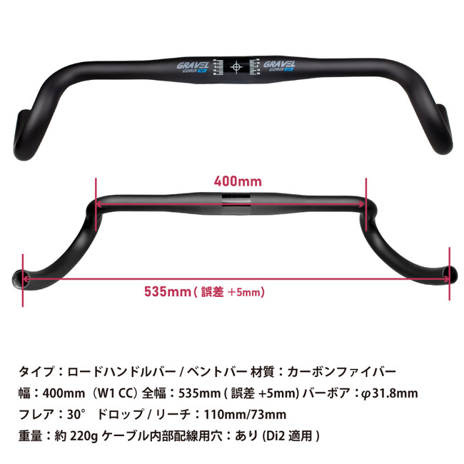 超軽量で吸収力に優れているフレア形状のカーボンハンドル(GRAVEL light)が新登場!
