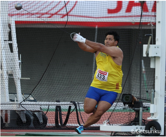 男子ハンマー投に出場の柏村亮太選手は惜しくも連覇を逃しましたが71m64 を投げ2 位、男子走幅跳に出場の小田大樹選手は最終跳躍で7m90 を記録し3 位となり、両者ともに国際大会代表権獲得へと1歩近づきました。