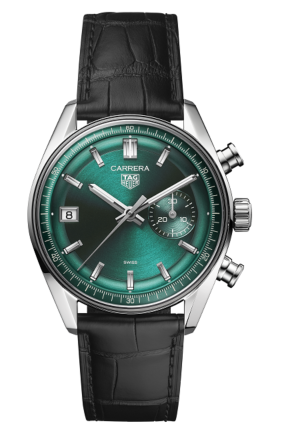ティールグリーンという選択は単なる思いつきではなく、モータースポーツの歴史への敬意の表れです。1920年代から60年代にかけての刺激的なモーターレース時代には、国ごとにレーシングカーの塗装色が分けられていました。ティールグリーンは当時使われたヴィンテージグリーンを再現したものです。タグ・ホイヤーがレース界に築いてきた伝統を反映し、カレラコレクションにモータースポーツ黄金時代への郷愁を吹き込んでいます。