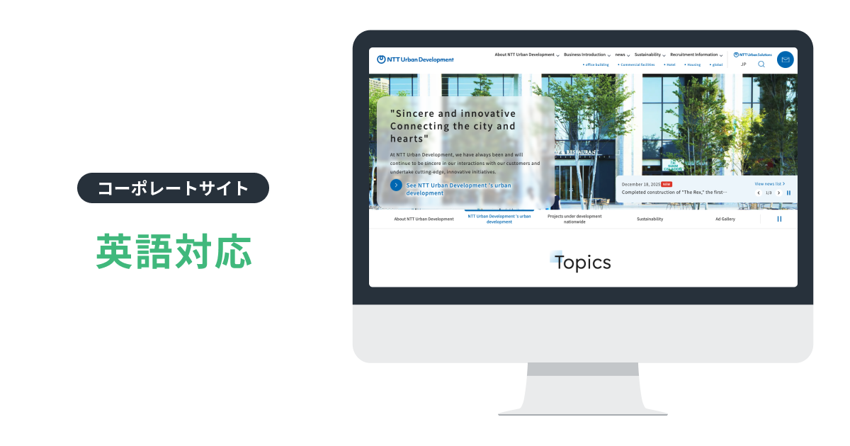 NTT都市開発のコーポレートサイトを、日本語を元言語として WOVN.io で英語対応しています。