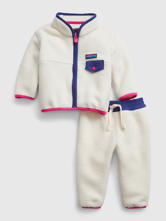 キッズからは、メンズとお揃いのデザインがグリーン、ネイビー、ホワイトの3色で並び、ユニセックスで着用できます。ベビーはメンズ、ボーイズと同様のデザインに、セットアップになるフリースパンツ付きの商品が揃います。