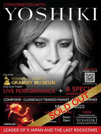 この日は発表の他に、米ロサンゼルスのダウンタウンにある、グラミーミュージアムのクライヴ・デイヴィス・シアターにて、グラミーミュージアムのチーフ・キュレーター兼管理部門副社長のJasen Emmonsと対談を実施。そこで、YOSHIKIのロックとクラシック音楽における不朽のキャリアと、今後予定されている活動について語る。