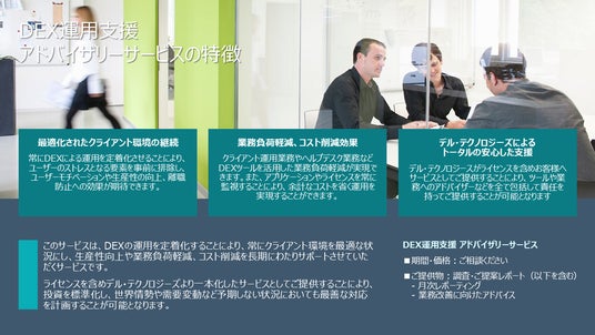 DEXの運用を定着させることで、クライアント環境を常に最適な状態に保ち、従業員の生産性・エンゲージメント向上、業務負荷軽減、コスト削減を中長期的に支援します。デル・テクノロジーズは、グローバルな実績と専門知識を活かし、日本企業のDEX成熟度向上を伴走型で支援します。