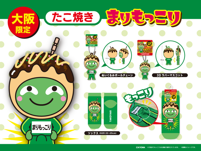 オリジナル商品の企画・制作・販売を軸に、企業・組織のトータルブランディングを手掛ける株式会社ヘソプロダクション(本社:大阪市福島区・代表取締役:稲本ミノル)は、「大阪限定 たこ焼き まりもっこり」のソックス、ぬいぐるみボールチェーン、3Dラバーマスコットを、2023年8月上旬より販売開始いたします。