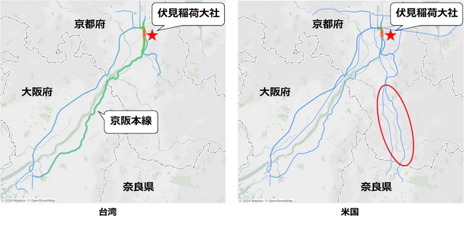 伏見稲荷大社の最寄り駅である、JR奈良線 稲荷と京阪本線 伏見稲荷で降車した台湾、米国の旅行者に着目すると以下のことがわかります。