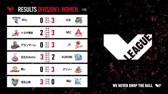 バレーボール国内最高峰リーグ V.LEAGUE【1月20日の試合結果】