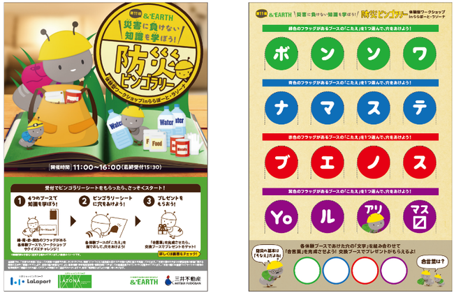 三井不動産株式会社(所在:東京都中央区)と三井不動産商業マネジメント株式会社(所在:東京都中央区)は、レジリエントでサステナブルな社会の実現にむけて、行政や消防・NPO等と連携し、防災啓発イベント「第10回 &EARTH 災害に負けない知識を学ぼう!~防災ビンゴラリー~」を、首都圏7施設にて2月18日(土)から順次開催します。