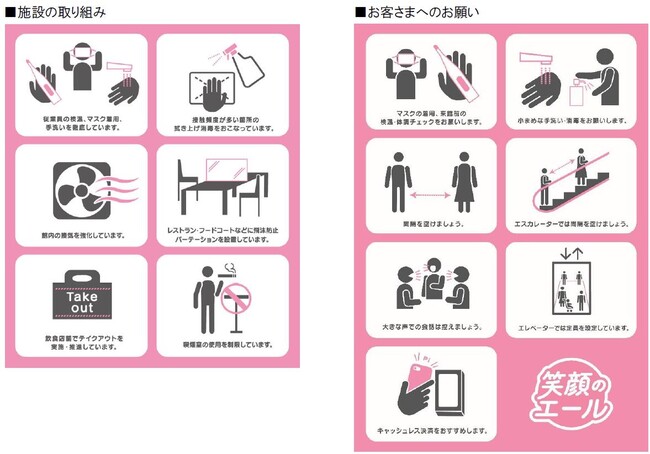 三井不動産グループが運営する商業施設では、新型コロナウイルス感染拡大防止のため、下記をはじめとしたさまざまな取り組みを実施しております。