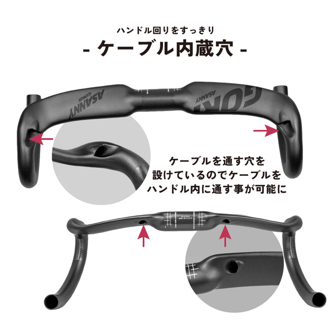 ケーブルを内蔵できる穴もあるので、すっきりとしたハンドル周りにもなります。