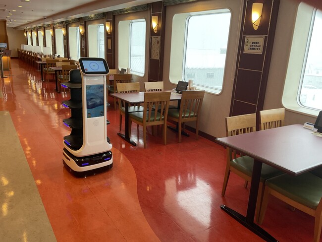 新潟~小樽をむすぶ 新日本海フェリーのらべんだあ・あざれあでは、船内レストランに配膳ロボットを導入しました。注文後、かわいいロボットがあなたのお席までお食事を運んでくれるかも?!