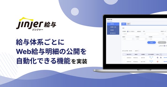 クラウド型人事労務システム「ジンジャー」を提供しているjinjer株式会社(本社:東京都新宿区、代表取締役社長CEO:冨永 健)は、給与体系ごとにWeb給与明細の公開を自動化できる機能を実装したことをお知らせします。