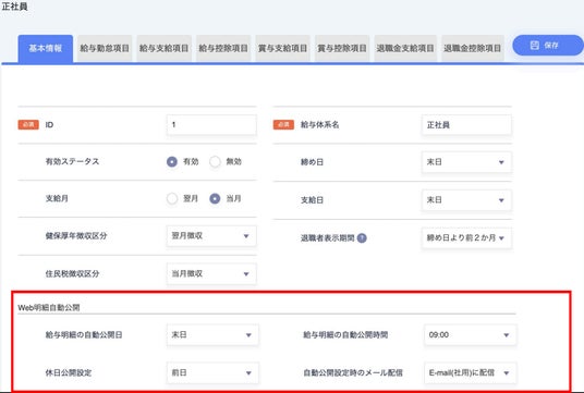 本機能の実装により、給与体系ごとにWeb給与明細の公開を自動化できる機能を実装しました。具体的には、給与計算の締め処理時に自動でWeb給与明細が公開できるよう、公開予約の設定ができるようになります。