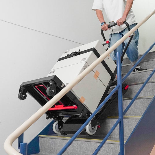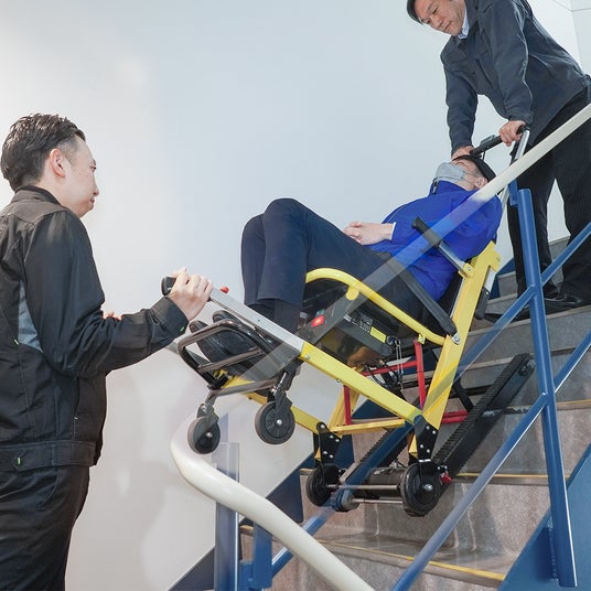 「電動階段昇降式ヒューマン台車」や「折り畳み電動階段のぼれる台車ハンドル可変タイプ」など、階段を昇り降りできる電動階段台車シリーズを展示。暑さ対策アイテムも展示予定。