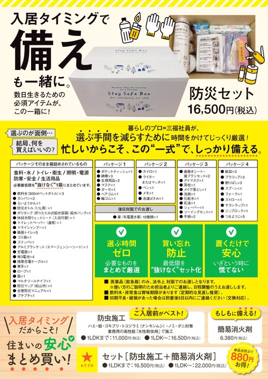 三福綜合不動産から「防災・防虫・消火セット」販売|入居のタイミングで備えも一緒に