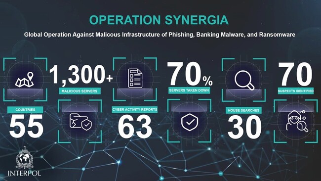 今回の共同作戦の一環として、さまざまなサイバー犯罪に関連する約1,300台の不審なサーバーが特定されました。その結果、これらの悪意のあるサーバーの7割に対して停止措置を講じることができ、複数の国で容疑者の逮捕にもつながりました。