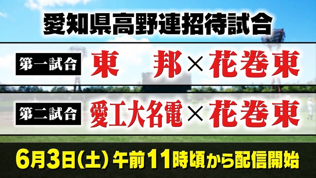 テレビ愛知(愛知県名古屋市)は、愛知県高等学校野球連盟(以下、愛知県高野連)が主催する「第9回愛知県高等学校野球連盟招待試合」を2023年6月3日(土)に地上波放送とLocipo・YouTubeでのライブ配信でお届けします。