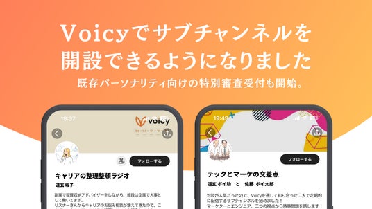 音声プラットフォーム「Voicy」を運営する株式会社Voicy(本社:東京都渋谷区、代表取締役CEO:緒方憲太郎)は、2025年3月27日(木)より、現在 Voicyで配信しているパーソナリティ向けにサブチャンネルの開設を可能にし、そのための特別審査受付を開始することをお知らせいたします。