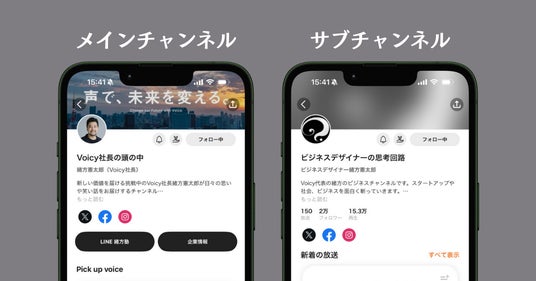 Voicy代表の緒方憲太郎も、自身の経験を活かし、2つのチャンネルを使い分けています。