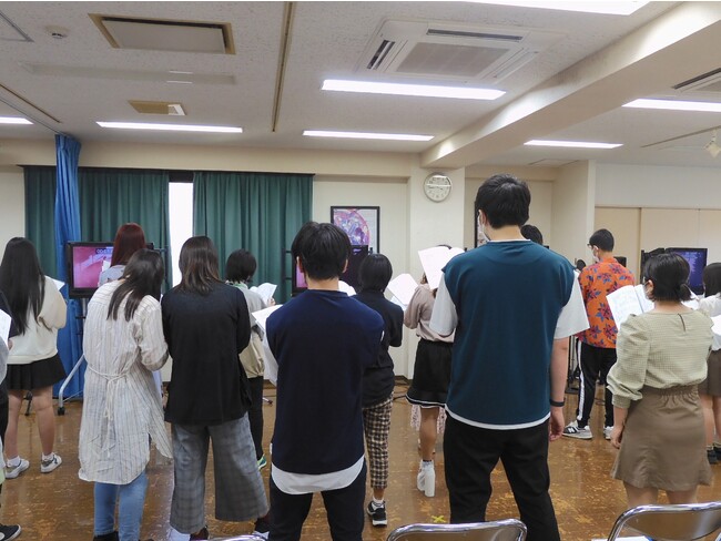 みんなで発声練習を行った後は、教室を移動していよいよ収録。