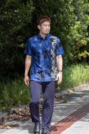 また、花柄部分には淡い色を取り入れることで、柔らかさや優しさを表現し、クールな印象を与えるネイビーブルーの生地と調和され鮮やかで明るい印象をもたせ、様々なシーンで着こなすことができます。